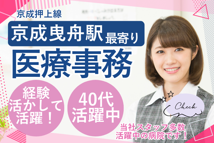 【京成曳舟駅徒歩7分】経験を活かせる医療事務*残業ほぼなしで働きやすい◎福利厚生充実の病院勤務