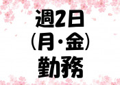 1、シフト制 日勤 08:30~17:20 その他 50分 2、シフト制 早番 07:00~16:00 休憩60分 ※(月曜日と金曜日のみ週2日勤務)