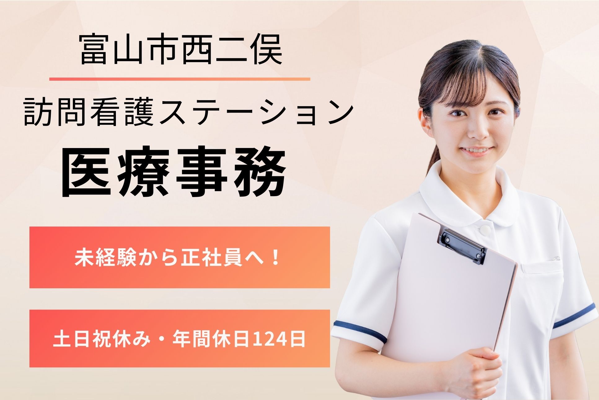 【富山市/土日祝休み&年休124日】未経験OK!訪問看護ステーションの医療事務*賞与あり&マイカー通勤◎