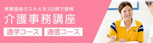 介護事務とは、福祉施設や医療機関、介護サービス事業所などでの利用者様への介護サービスの説明、介護報酬請求業務(レセプト作成)、受付業務等が主な仕事です。