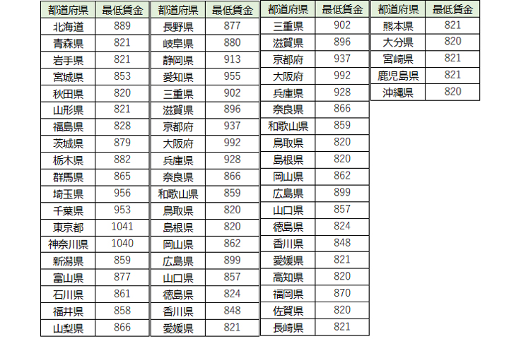 全国最低賃金は年々増額しているが、地域によってまだまだ最低賃金額に差がある。