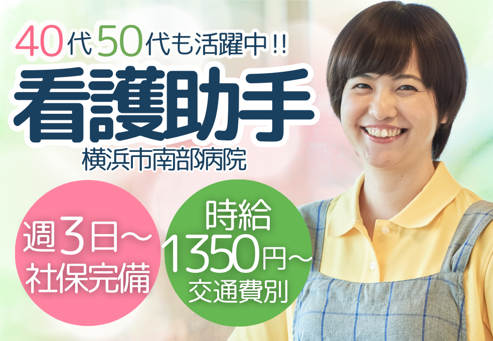 【横浜市港南区】週3日・時給1350円~|夜勤なし◎身体介助なし◎40代50代スタッフ活躍中!ナースエイド
