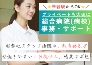 土日祝休み×残業ほぼなし。 プライベートも大切にできる病院事務♪