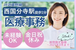 【西国分寺駅徒歩1分】未経験OK!日祝休み&週5日勤務*産休代替の医療事務スタッフ募集