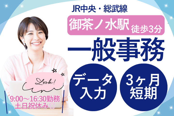 【御茶ノ水駅3分】未経験OK!健診データ入力/土日祝休み&16:30まで★期間限定の一般事務