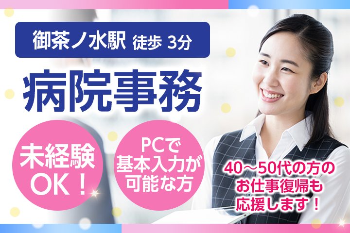 【御茶ノ水駅チカ3分】未経験OK!大学病院で始める初診受付*資格なし&40~50代も活躍中♪