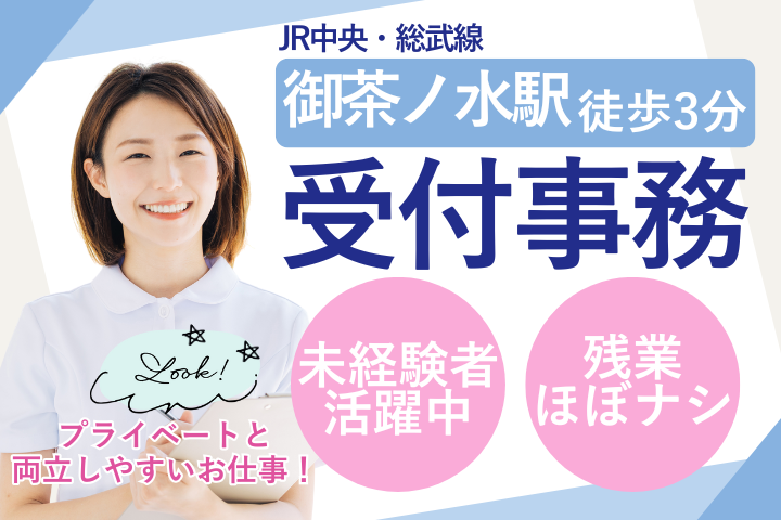【御茶ノ水駅 徒歩3分】アクセス良好!有名大学病院で受付事務のお仕事です。将来を見据えてあなたの夢を叶えるためにしっかり収入を得てみませんか?