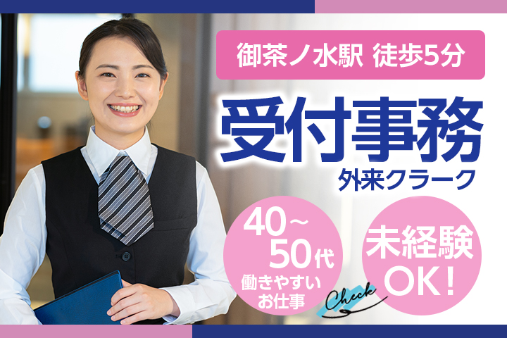 【御茶ノ水駅 徒歩3分】アクセス良好!有名大学病院で受付事務のお仕事です。将来を見据えてあなたの夢を叶えるためにしっかり収入を得てみませんか?