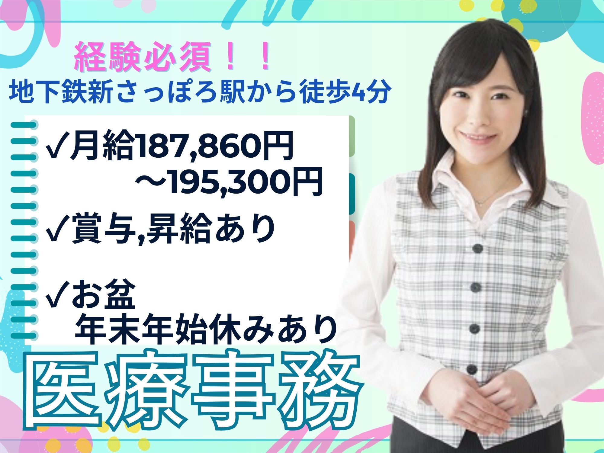 【地下鉄新さっぽろ駅から徒歩4分】経験必須!!月給187,860円~195,300円/日祝固定休み◎お休み充実