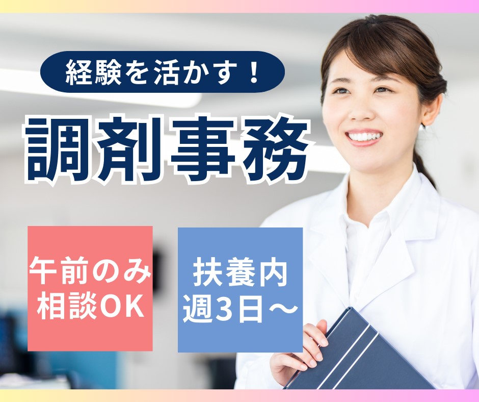 【駅チカ・週3日~】調剤薬局の事務スタッフ募集★経験活かせる&時短OK!扶養内も◎
