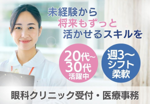【鷲宮駅徒歩20分・車通勤OK】未経験歓迎!選べる働き方&安心のOJTあり☆扶養内・WワークOK◎眼科クリニックの医療事務♪