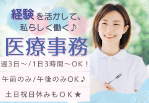 【1日3時間~×週3日OK】家庭と両立しながら医療事務経験を活かしたい方へ♪シフト柔軟対応◎パートスタッフ募集