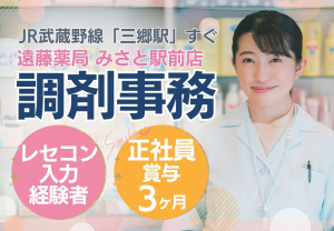 【三郷駅徒歩1分】調剤事務*レセプト経験を活かして正社員へ★月給19.3万円+賞与3ヶ月+残業ほぼナシ♪