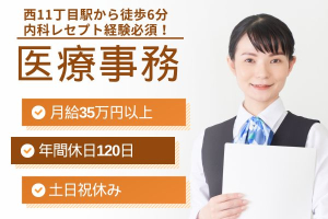 【札幌市中央区/地下鉄徒歩6分】月給35万円以上◎医療事務経験を活かせる正社員*土日祝休み・年休120日以上でプライベートも安心