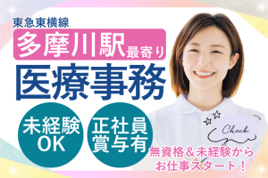 【多摩川駅7分/沼部駅8分】未経験OK!正社員で始めるクリニック医療事務◎賞与あり&残業ほぼなし
