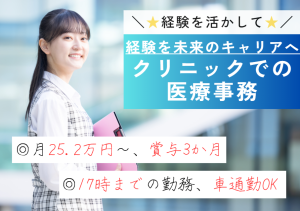 【福岡市南区/車通勤OK】経験を活かせる医療事務*賞与3ヶ月分*医療法人内科医院の医療事務募集