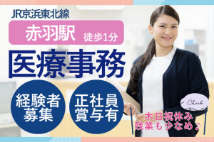 【赤羽駅徒歩1分】医療事務経験者歓迎◎残業少なめ×賞与あり*週休2日で私生活も充実!