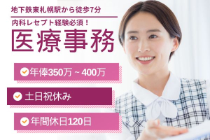 【西線6条駅徒歩2分】保険証確認が出来る方/資格不問/賞与3.7ヵ月分*50代も歓迎の医療事務|残業ほぼなし&日祝休み