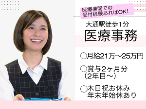 《大通駅徒歩1分》医療事務経験を活かして正社員へ*年間休日123日&賞与あり◎プライベートも充実!