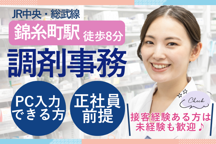 錦糸町駅徒歩8分*未経験から始める調剤事務・将来は正社員も目指せます!