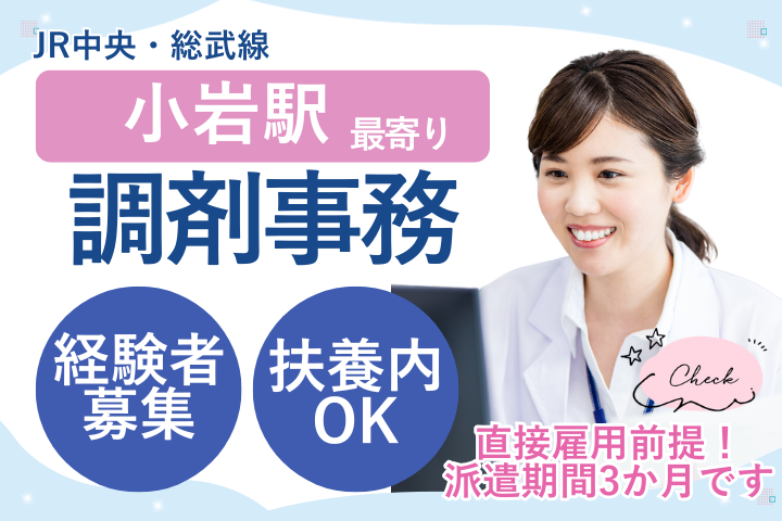 【江戸川区・週2日~OK】50代活躍中★調剤事務経験者歓迎!時給1300円~/扶養内パート