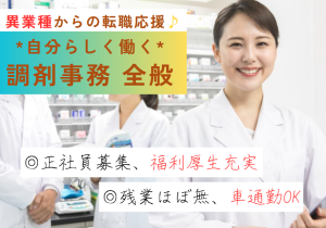 【方南町駅徒歩1分】未経験から始められる調剤事務★賞与年2回&残業少なめ!正社員採用で安定勤務