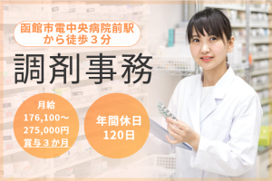 【函館市・時任町】調剤事務経験者募集★年休120日&賞与3ヶ月/安定の正社員・福利厚生充実!
