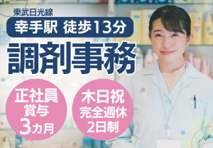 未経験から始める調剤薬局事務*正社員&賞与年2回*年間休日121日・残業ほぼなし