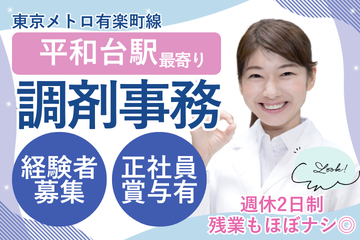 【平和台】駅チカ×住宅手当あり◎正社員の調剤事務/賞与3ヵ月分&日祝休み