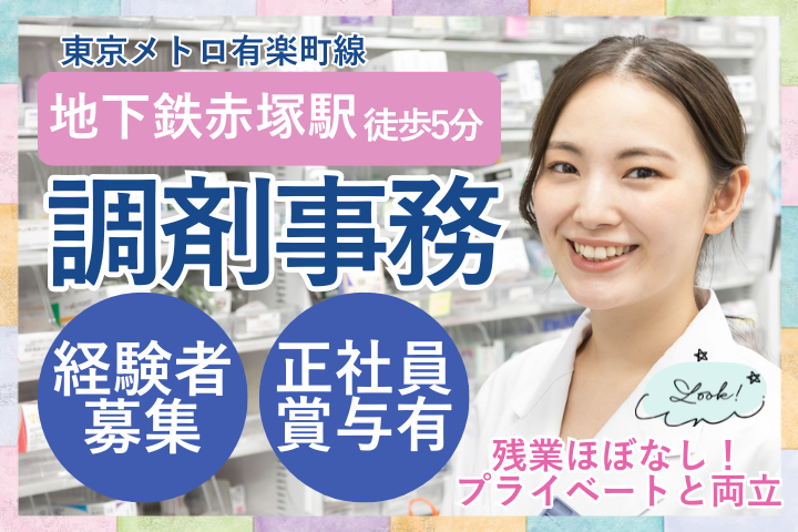 【赤塚駅徒歩3分】賞与3ヵ月分*調剤事務経験を活かして正社員デビュー!週休2日・年間休日120日♪