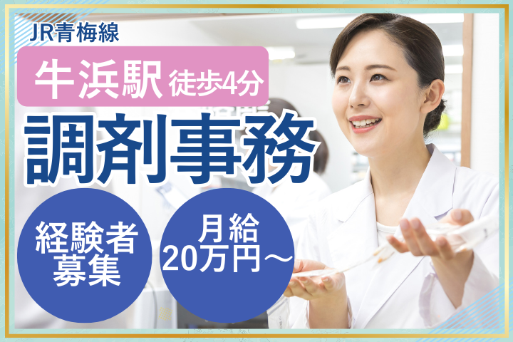 牛浜駅徒歩圏内◎賞与3ヶ月分・福利厚生充実!調剤事務経験を活かして働こう♪