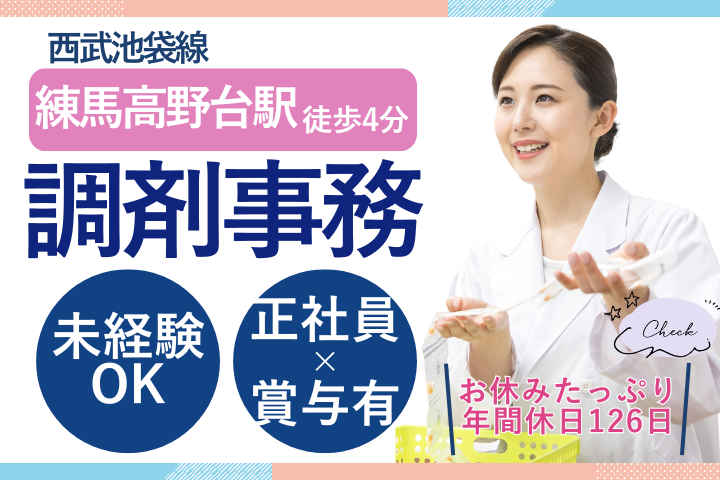そうごう薬局 練馬高野台駅店/未経験スタート応援♪正社員で安定勤務!大手グループ薬局の調剤事務/福利厚生も充実