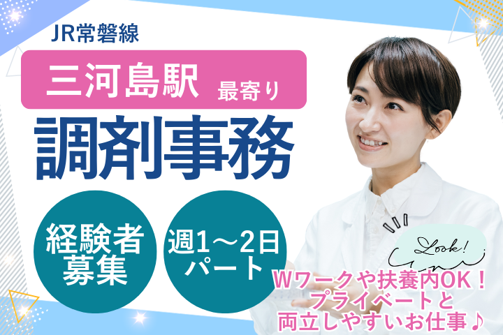 【三河島・日暮里駅徒歩7分】週1日~2日で扶養内・WワークもOK!経験活かせる調剤事務パート♪