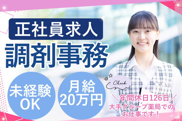 「南森町駅」 徒歩8分!経験少なめOK・正社員募集♪年間休日123日・子育て世代も活躍中!調剤事務スタッフ