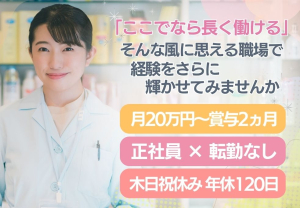 今の働き方、このままでいいのかな…と感じたら!調剤事務経験者歓迎◎安定して続けられる正社員へ!年間休日120日*賞与2か月