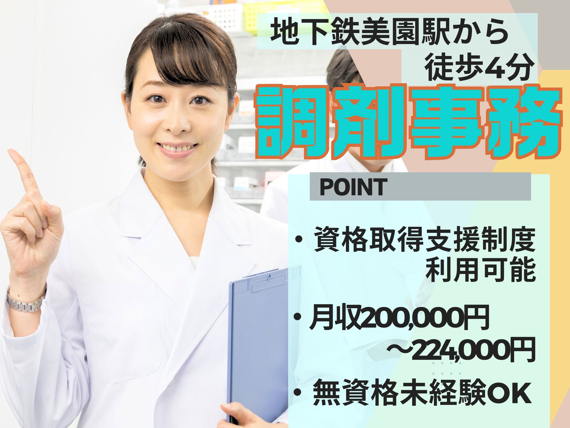 【地下鉄美園駅から徒歩4分】無資格未経験OK!月収200,000円~224,000円◎昇給あり/資格取得支援制度あり/マイカー通勤可能/無料駐車場完備!