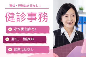 《小作駅徒歩7分》未経験・ブランク歓迎♪健診クリニック受付/時給1246円~&週3日~OK