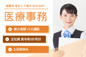 【江戸川区/土日祝休み&年間休日120日】医療事務経験者歓迎★賞与3ヵ月分支給♪