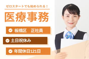 【板橋区役所前駅】未経験歓迎!正社員の医療事務◆土日祝休み&年休121日でプライベート充実◎
