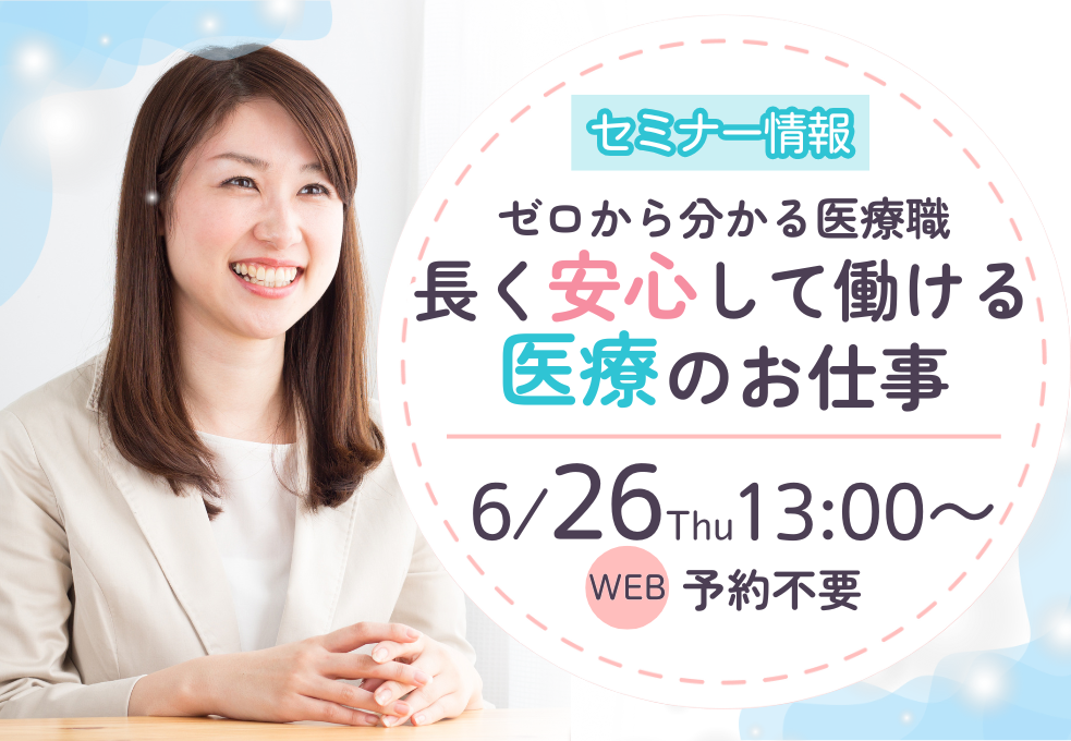 【WEBセミナー*当日参加も歓迎♪】~ゼロから分かる医療職~ 長く安心して…