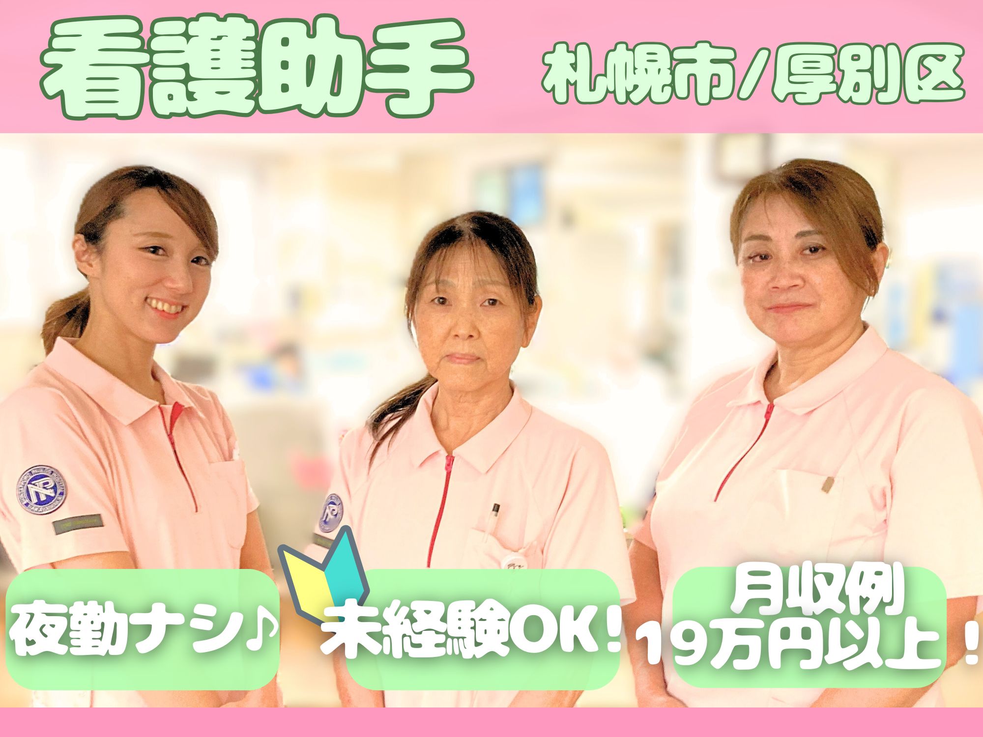 【お仕事見学会開催】無資格未経験OK!夜勤ナシ◎時給1,200円◎新札幌パウロ病院/看護助手