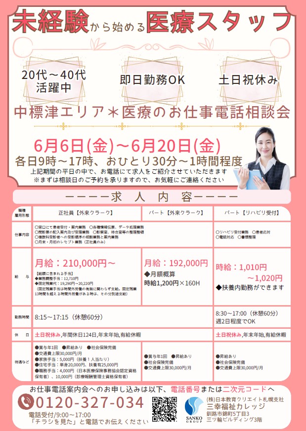 #北海道#中標津町#医療機関#キャリアアップ#お仕事説明会#相談会#正社員#20代#30代#40代#50代#無資格#医療事務#外来クラーク#受付#求人#仕事#社会奉仕#就職活動#転職活動#ブランクあり歓迎#人間関係#働きがいのある仕事#人や社会の役に立てる#今後ニーズの高まる仕事#仕事#求人#体験#見学#無料#服装自由#ハローワーク#三幸#三幸福祉カレッジ
