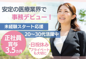 未経験OK!賞与3ヶ月+家族・住宅手当あり◎正社員の医療事務/マイカー通勤可&駐車場無料