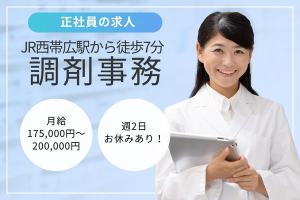 【JR西帯広駅から徒歩7分】調剤薬局での受付経験必須!月給175,000円~200,000円/賞与,昇給あり!週2日お休みあり/有限会社ネット つつじが丘薬局/調剤事務