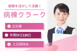 【立花駅5分】病棟クラーク/経験者歓迎*賞与4ヵ月*土日祝休&年休120日!安定正社員募集