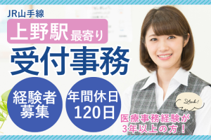 【上野駅徒歩7分】医療事務経験3年以上必須/40代女性活躍中♪日祝休み&年休120日以上で働きやすい正社員募集