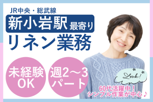 【新小岩駅徒歩12分】シンプル業務!未経験・ブランク歓迎♪シニア世代活躍中☆病院内のリネン業務スタッフ*