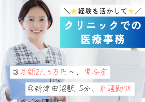 【津田沼駅徒歩5分】賞与3.4ヶ月*経験活かせる医療事務・管理職募集/40代活躍中・正社員