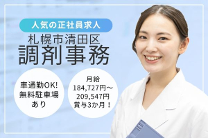 【札幌市清田区】経験必須!月給184,727円~209,547円/賞与3ヶ月!車通勤OK/無料駐車場あり/キタ調剤薬局平岡店/調剤事務