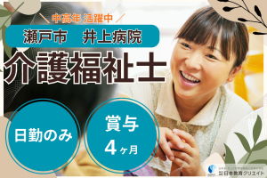 【瀬戸市・三郷駅徒歩14分】介護福祉士の経験を活かして働く!日祝休み&年休115日◎賞与4ヶ月分支給/総合病院のデイケア正社員